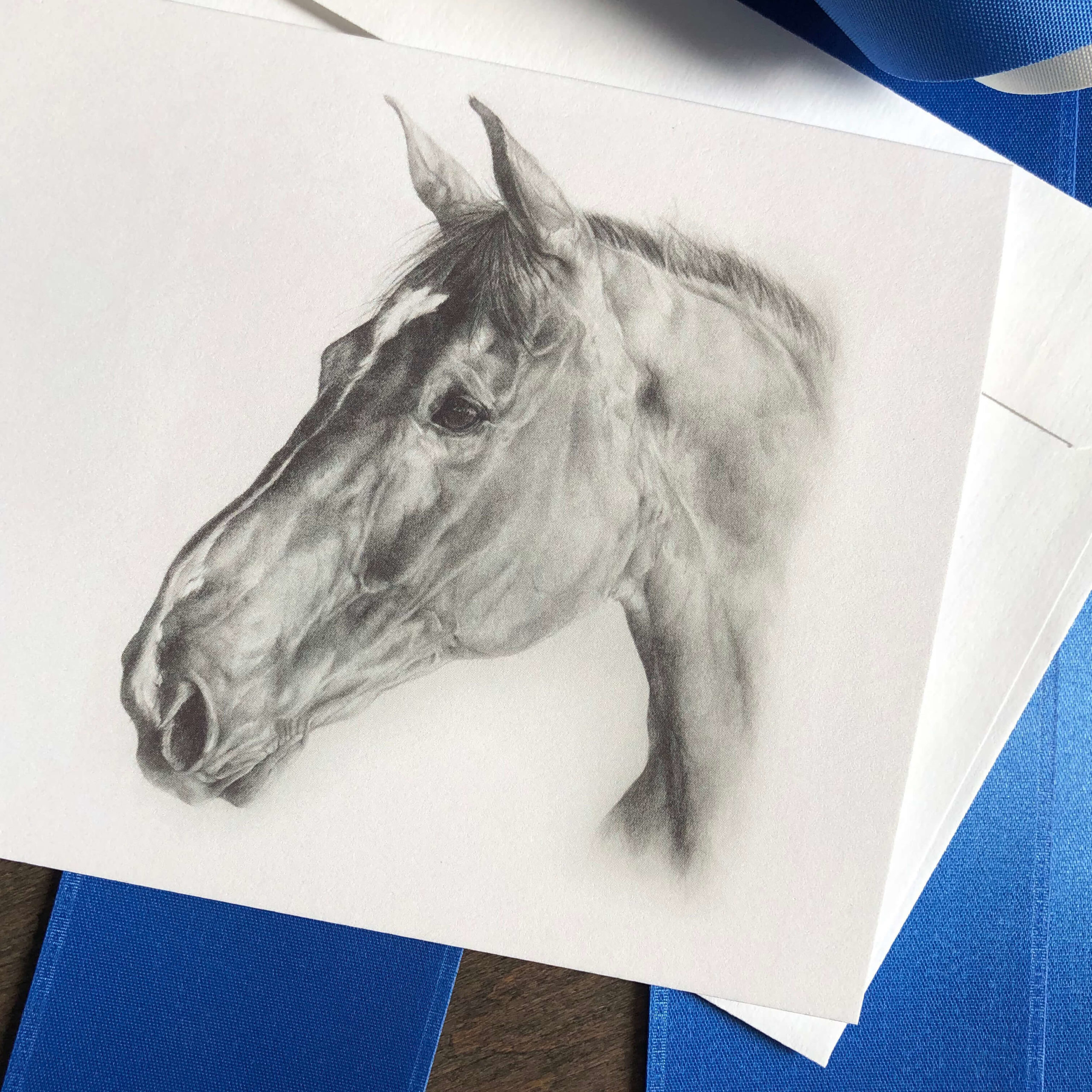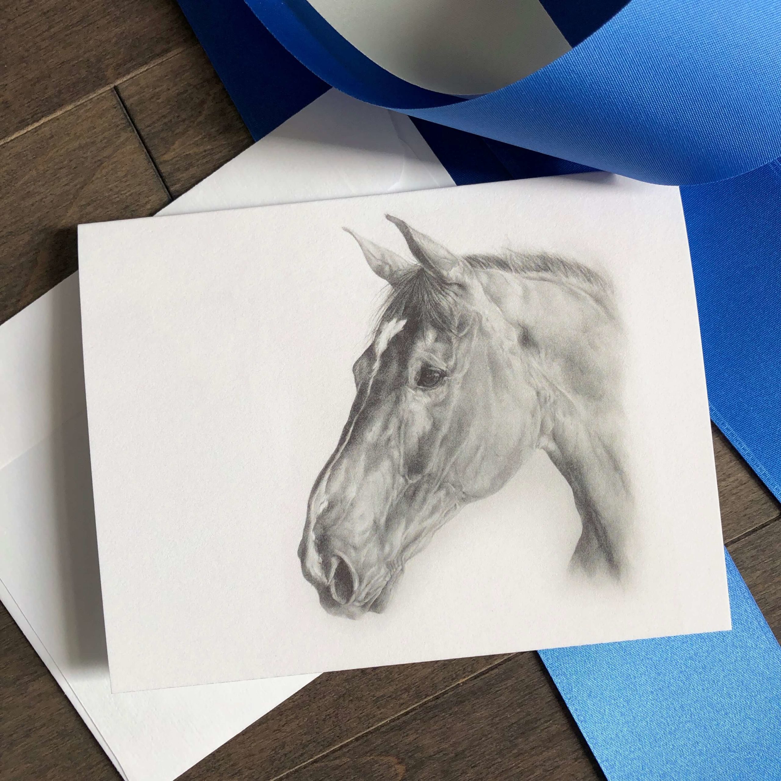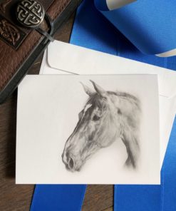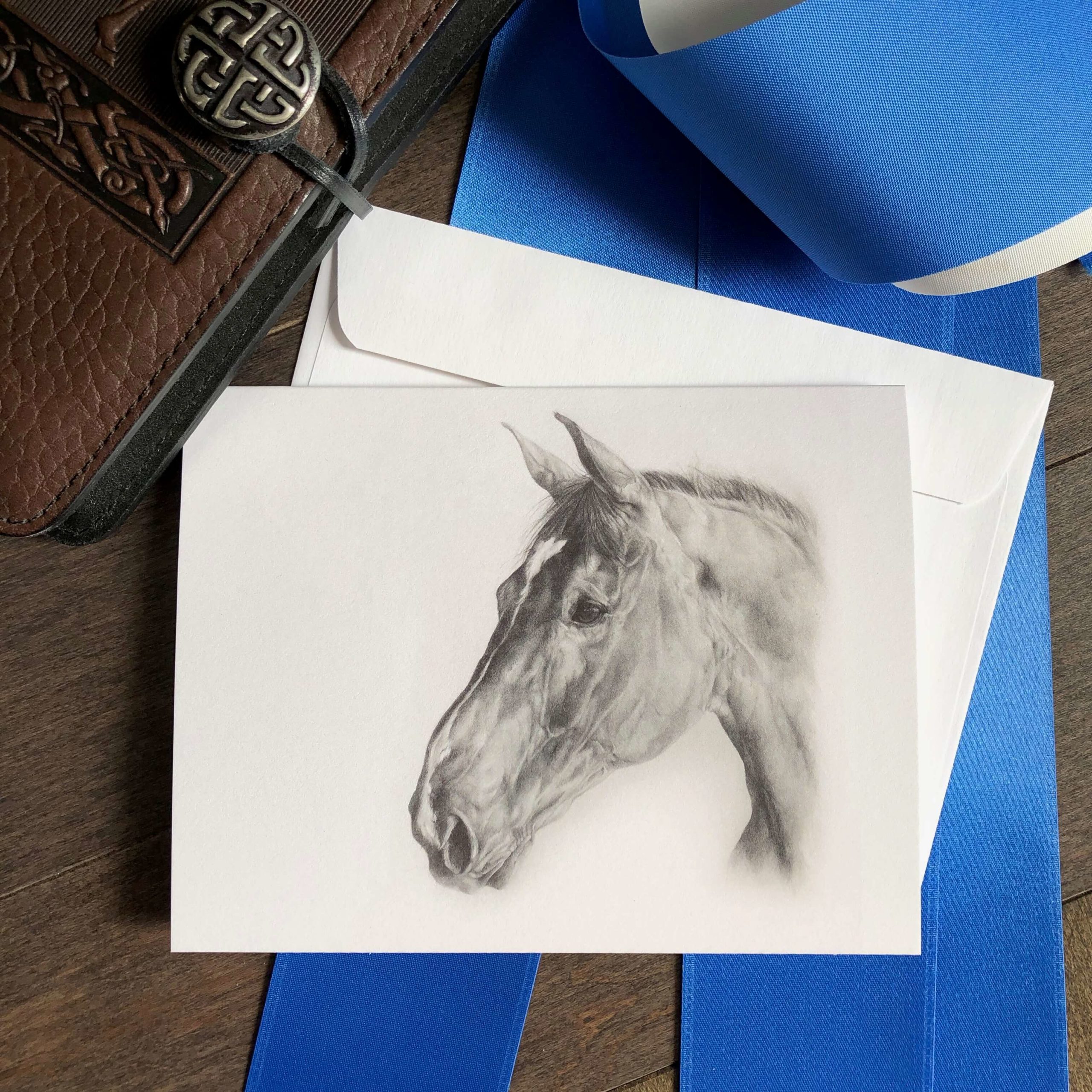 Blank inside, these horse notecards are perfect for any occasion. Printed on quality card stock, each notecard includes a fitted, white envelope and comes packaged in a clear card jacket for protection. Send a note to someone special or frame and gift it as a small artwork. Each notecard measures 4 x 5.5 inches when folded. Sold individually.