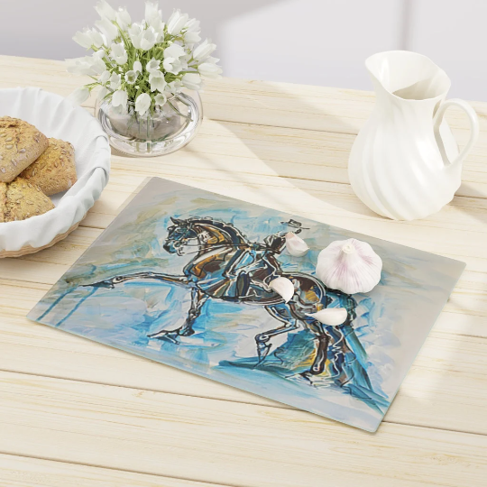 A kitchen is a place that thrives on creativity, and this beautiful, equestrian inspired cutting board is a wonderfully unique addition to any chef’s arsenal. Made with tempered glass, this personalized chopping block is dishwasher-safe and delivers high re-usability as well as resilience. Plus, the 4 rubber dots keeps the board safely in place for all your chopping and slicing tasks.
