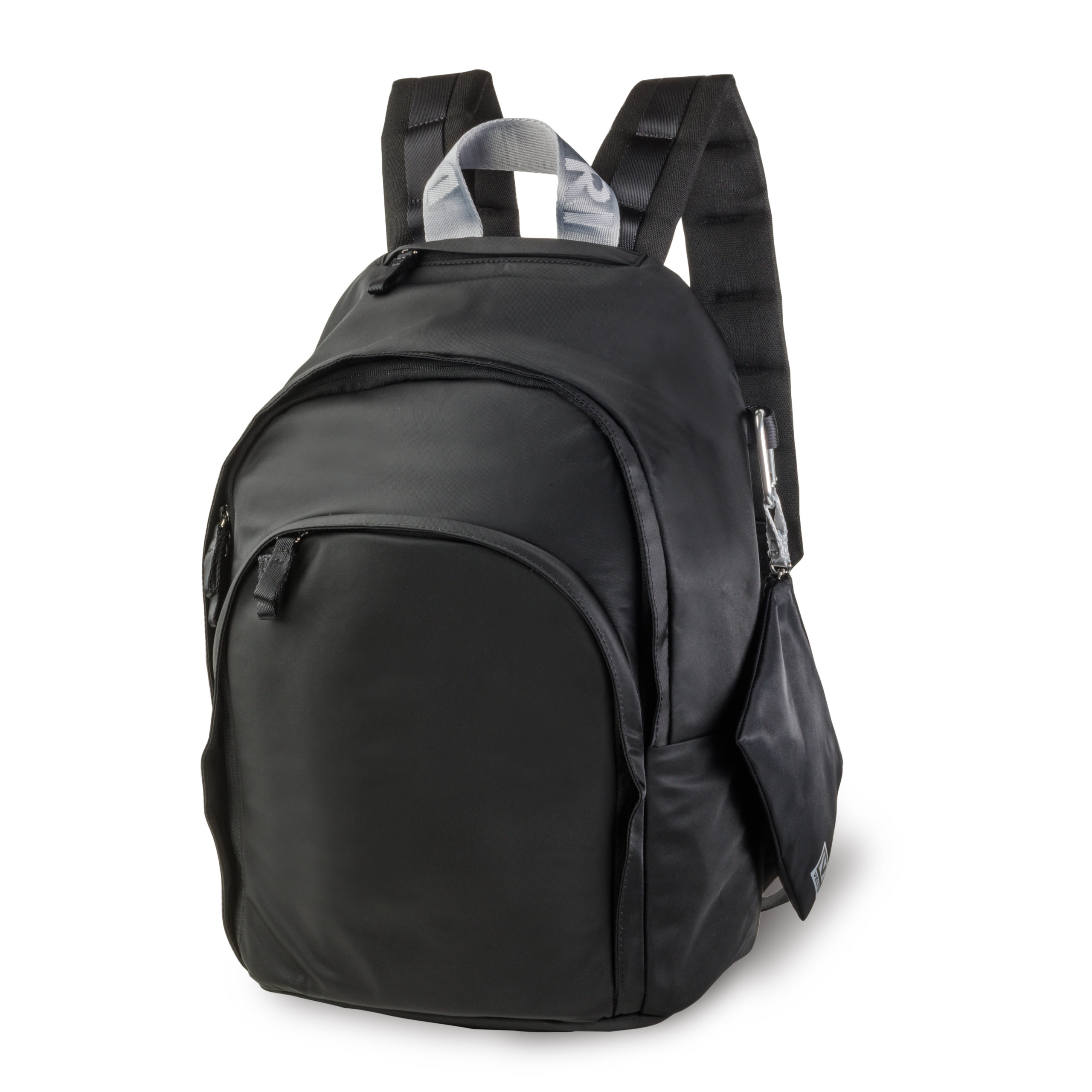 carabiner clip holds pouches and miscellaneous items