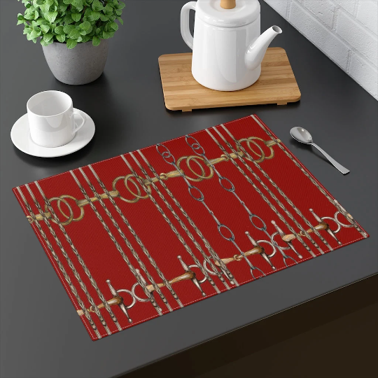 Equestrian Snaffle Bit and Reins Barn Red Placemat – Horse Lovers Gift – Equine Kitchen – Equestrian Dining Decor Active