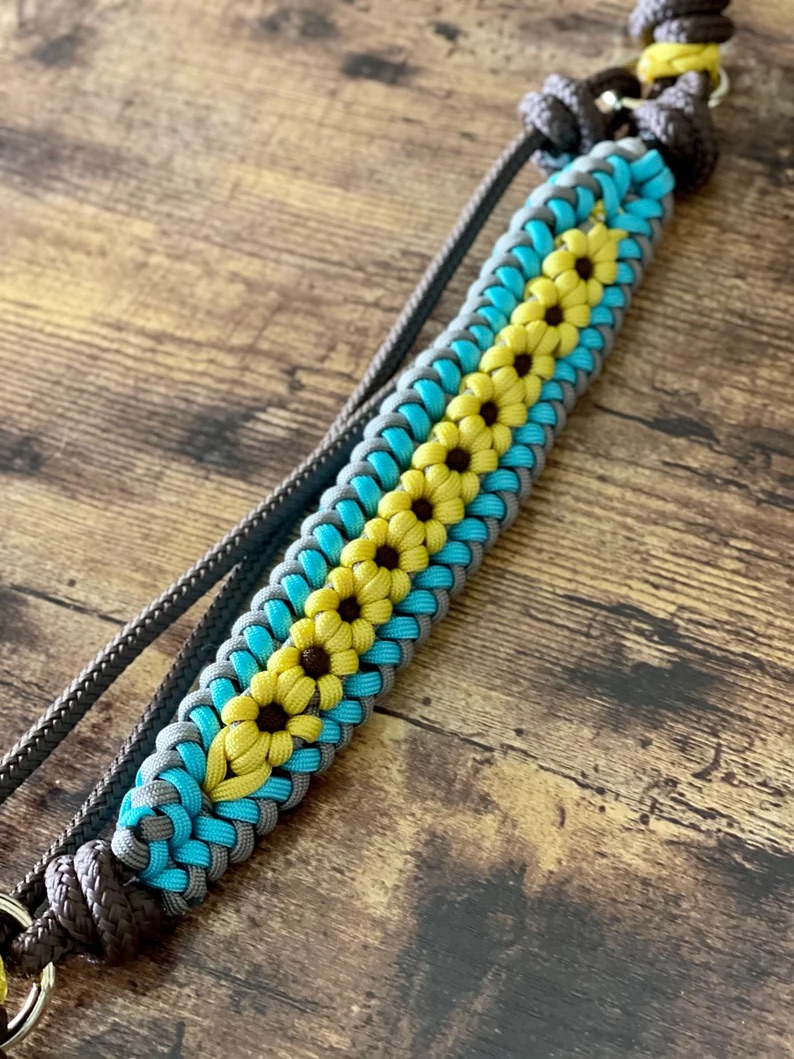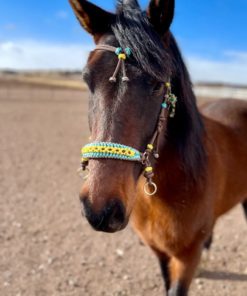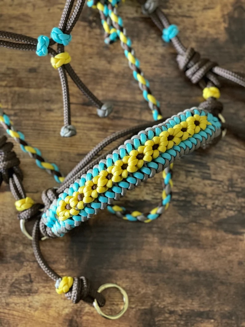 Knotted Soft Indian Hackamore Bitless Riding Attachment- Sunflower Braided Paracord Overlay- Horse Training, Riding, Natural Horsemanship