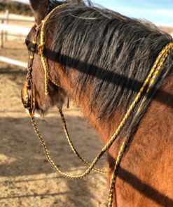 These handmade rope reins are perfect for attaching to any of the bridles in my shop, or an existing bridle you may have. The reins can be solid colored or braided with multiple colors for a unique look. Choose your length for each rein: 5, 6, or 7 feet long with an additional one-foot fringe popper on the end. Custom lengths are available upon request. The end of the reins attaches with a braided button or optional scissor snaps that can be added for easier on and off your bridle. Choose one to four colors for your reins, feel free to send me pics of your horse and or tack so I can match colors!