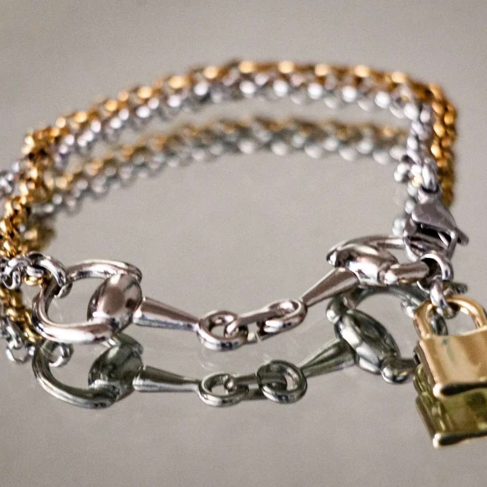 This piece is absolutely stunning – and handmade exclusively for Cavaliere Couture by woman owned small business AMOR EQUUS! This beautiful dual gold and silver chain with dainty bit and locket is such an elegant statement piece for the equestrian in your life