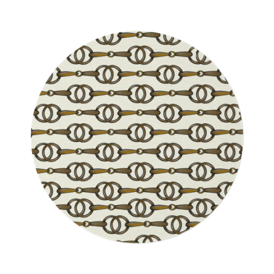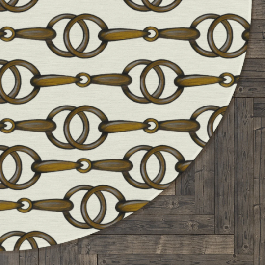 Ivory and Gold Snaffle Bit Equestrian Smooth Round Rug for Home, Tack Room or Tack Stall