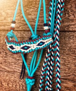 This is a soft rope halter with a paracord noseband overlay. The main rope used is a high-quality very durable 1/4 inch polyester yacht braid. The overlay is added using paracord. The style of this halter is perfect for training and bitless riding. Because of the small diameter of the main rope, it also fits nicely under most bridles. This halter is made in mini, pony, arab/cob, horse, warmblood and draft sizes. Their is a size chart in the images for your reference. If you are concerned about a perfect fit, please select “custom size” and I would be happy to make a halter according to your measurements. You may choose one color for the main rope and up to four for the knotted noseband overlay. The lead rope is braided paracord and a great length at 10 feet long. It’s lightweight and incredibly durable. Perfect for everyday use and training. Lead rope can be made in four colors.