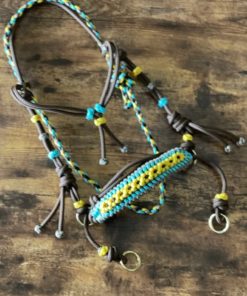 This soft knotted indian hackamore bitless bridle set is both fashionable and heavy-duty. Snap your reins to the heavy-duty 1-inch stainless steel or brass rings and you are ready to ride! The straps criss-cross under your horse’s chin to apply pressure on the opposite side you put pressure on. This works similar to a D ring or full cheek snaffle. Works for training, trail riding, or just everyday hacks! The soft rope is comfortable for your horse and provides clear communication. This makes this style of bitless bridle great for transitioning to bitless riding. You choose what size will fit your equine best or select “custom” sizing. With this option, you send me measurements and I’ll make this attachment specifically for your horse. The sides of the bridle as well as the brown and are fully adjustable for the best fit. The colors are totally custom as well! Choose one color for the main rope and up to three for the paracord overlay. Don’t forget to order matching reins!