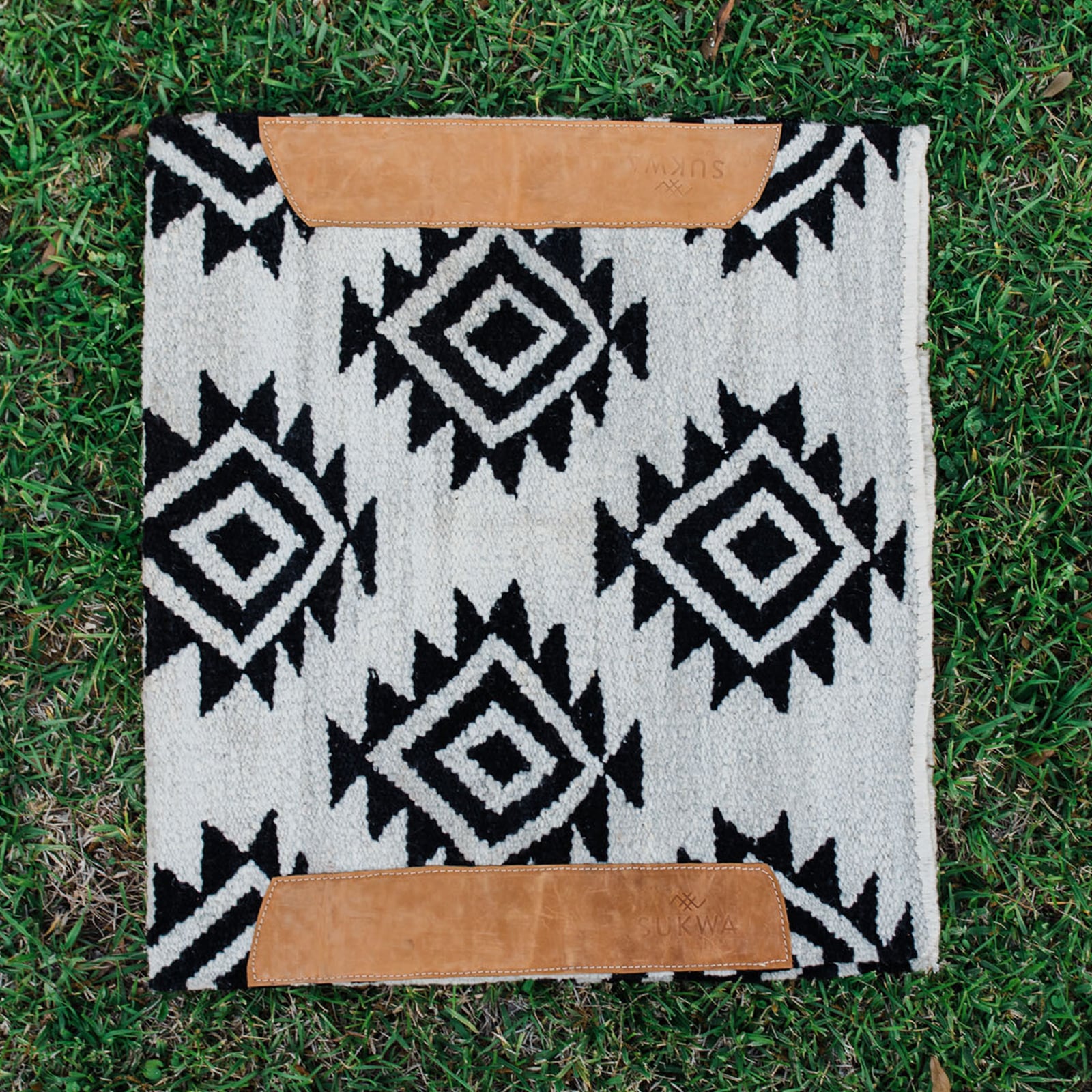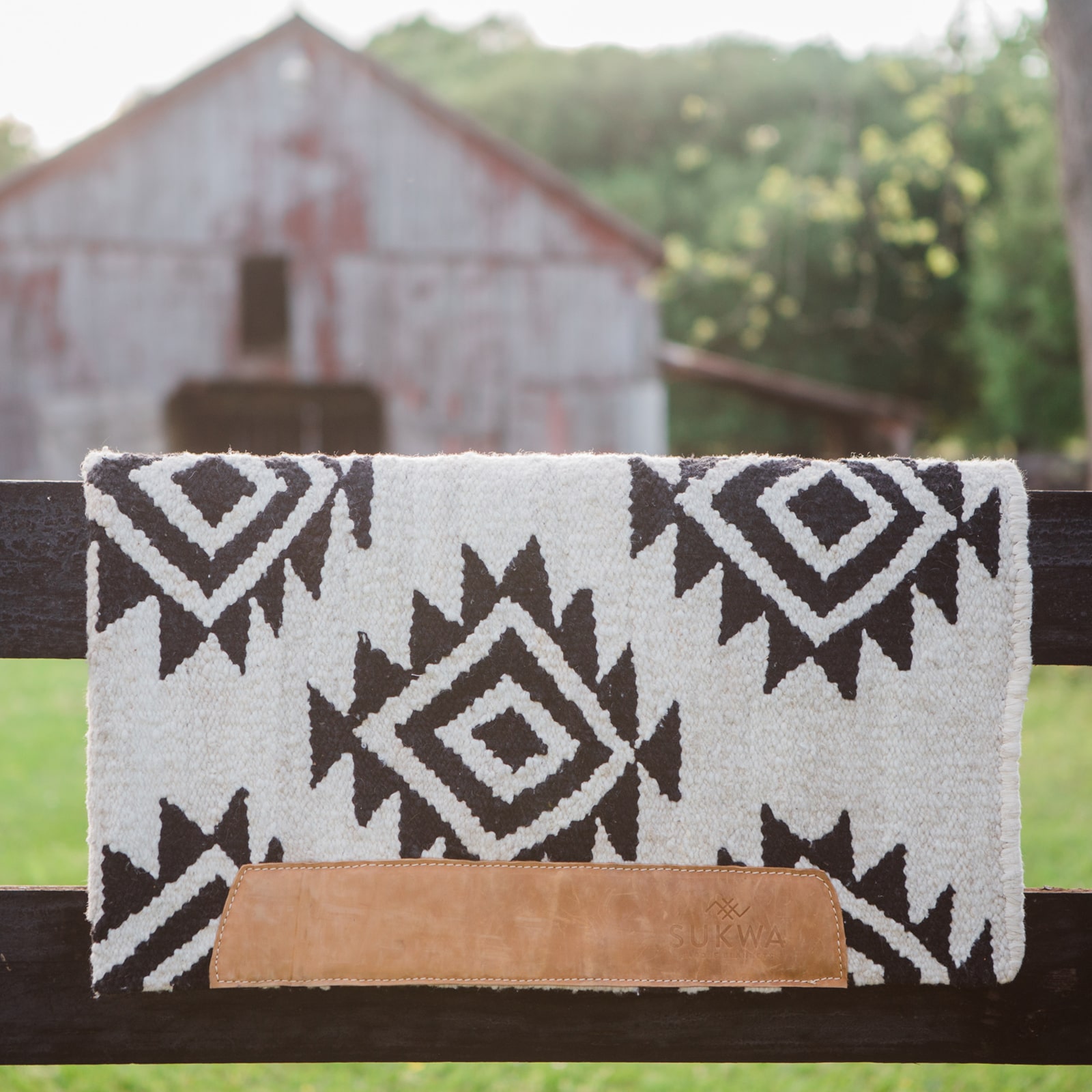 Named for Hank Williams, one of the most significant and influential American singers and songwriters of the 20th century, the Hank Saddle Blanket is equally as universal in overall appeal. The black and cream Navajo-inspired pattern paired with rich leather give the Hank a look that defies trend and attracts riders of any age or gender. Just like the music of Hank Williams continues to captivate listeners today, so will the Hank Saddle Blanket provide a nearly ubiquitous appeal for years to come.