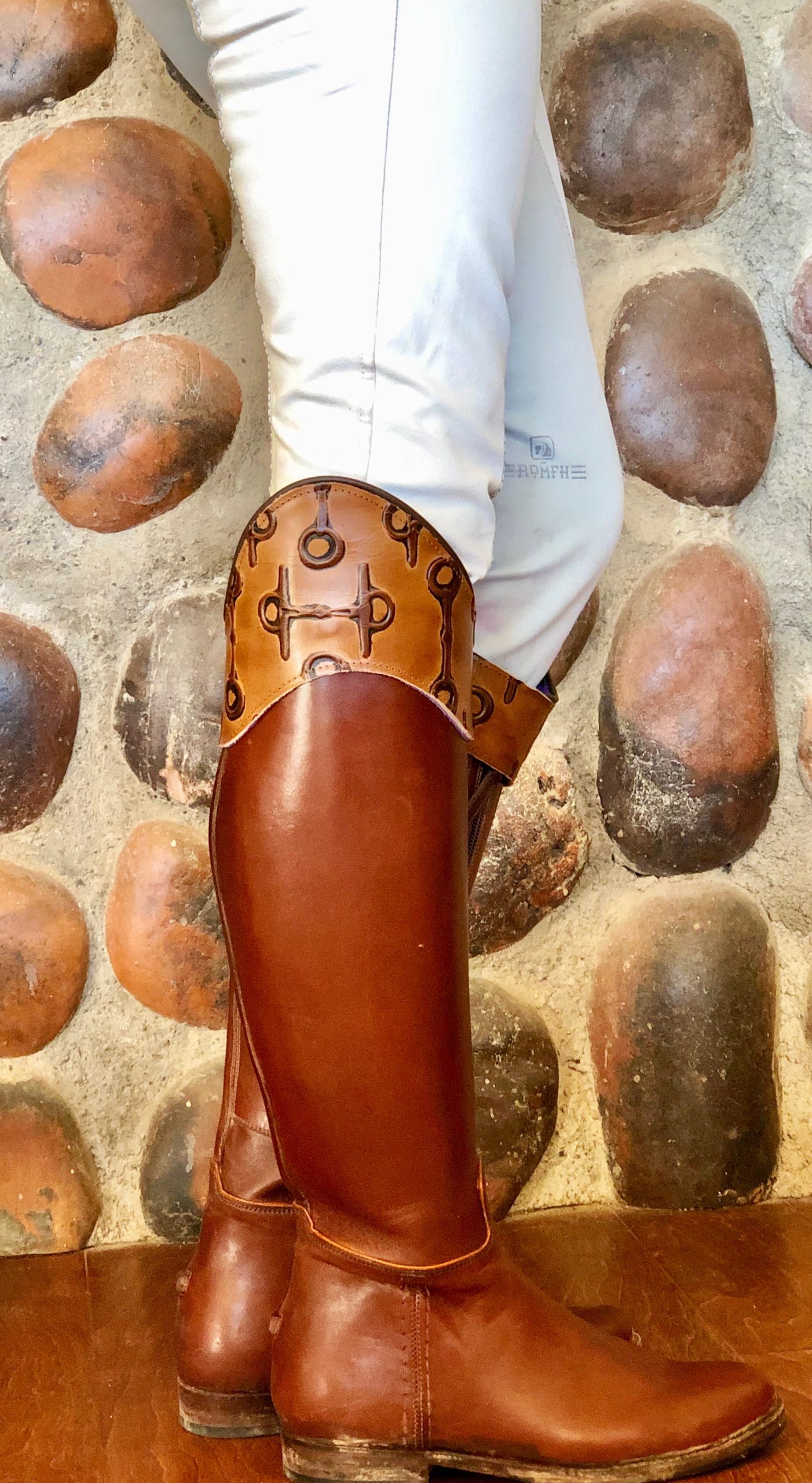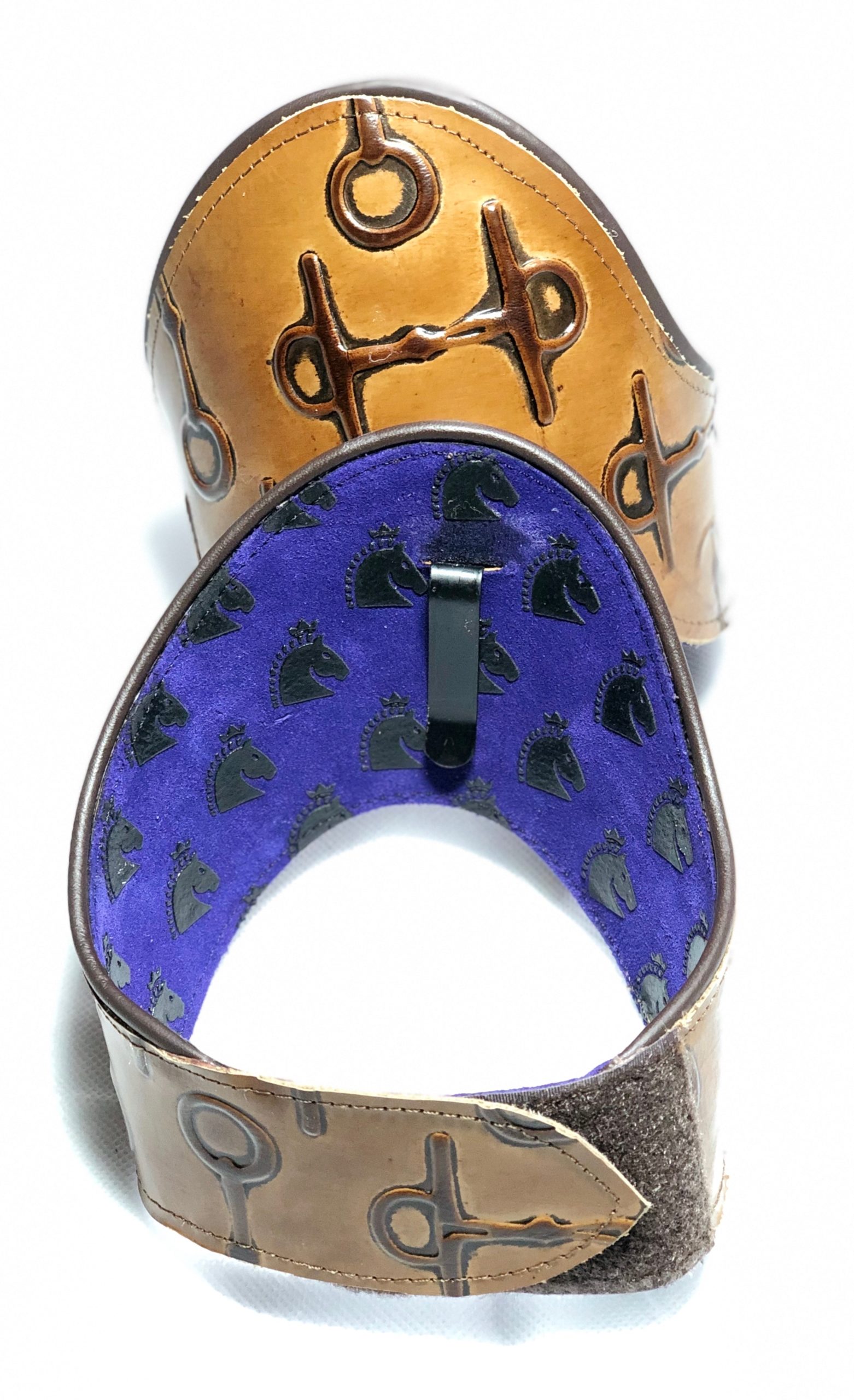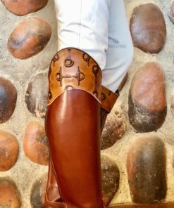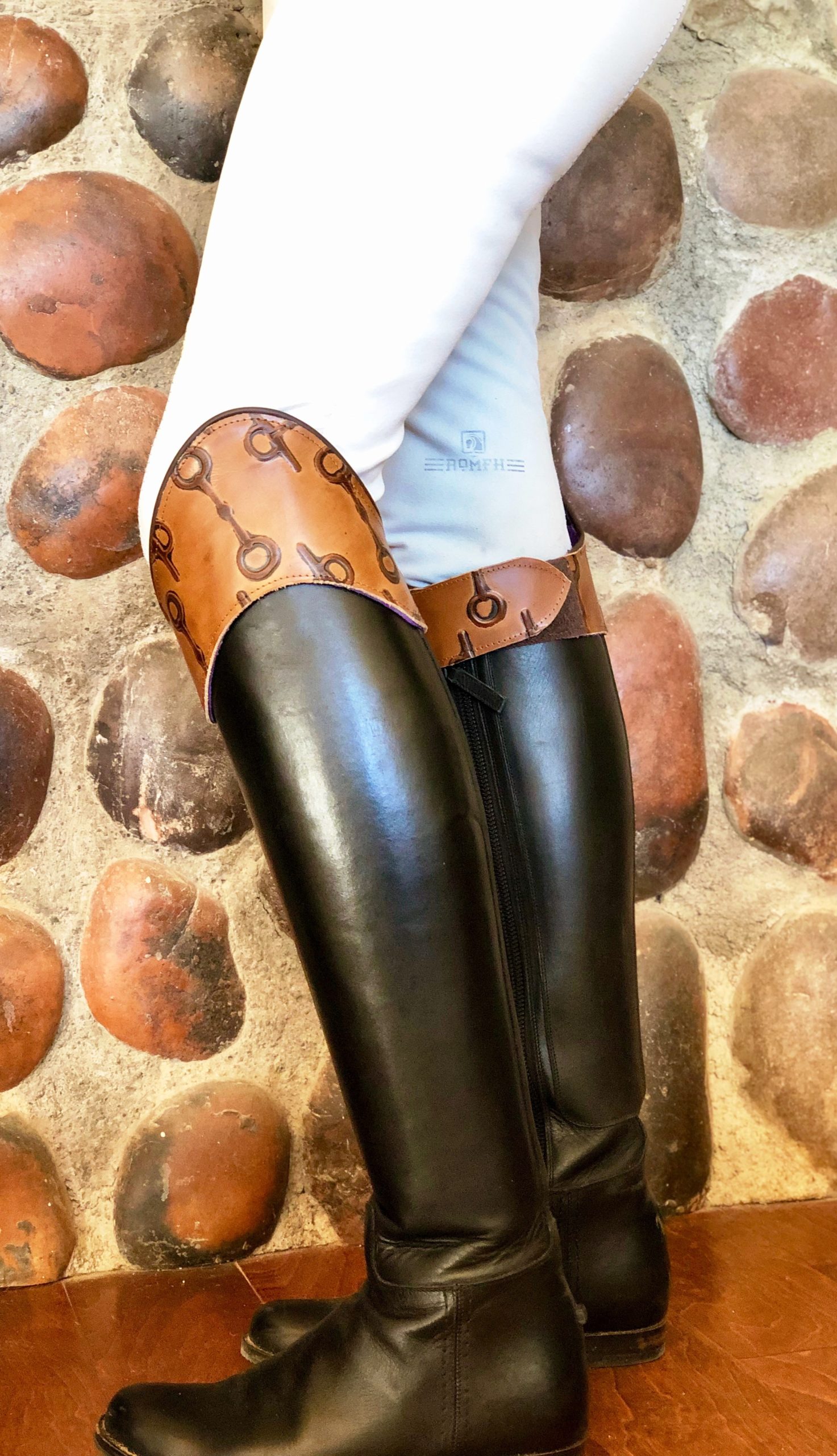 The Windsor is made from a pliable brown leather with an embossed snaffle bit pattern that add a custom touch to your tall riding boots. These boottoppers are easy on/off allowing for quick and easy customization of your existing boots. They look great on Brown or Black Boots.